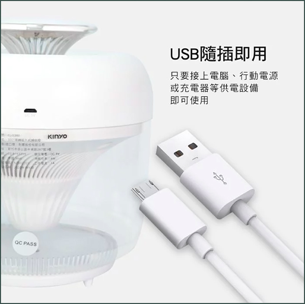► USB隨插即用,只要接上電腦、行動電源或充電器等供電設備即可使用。